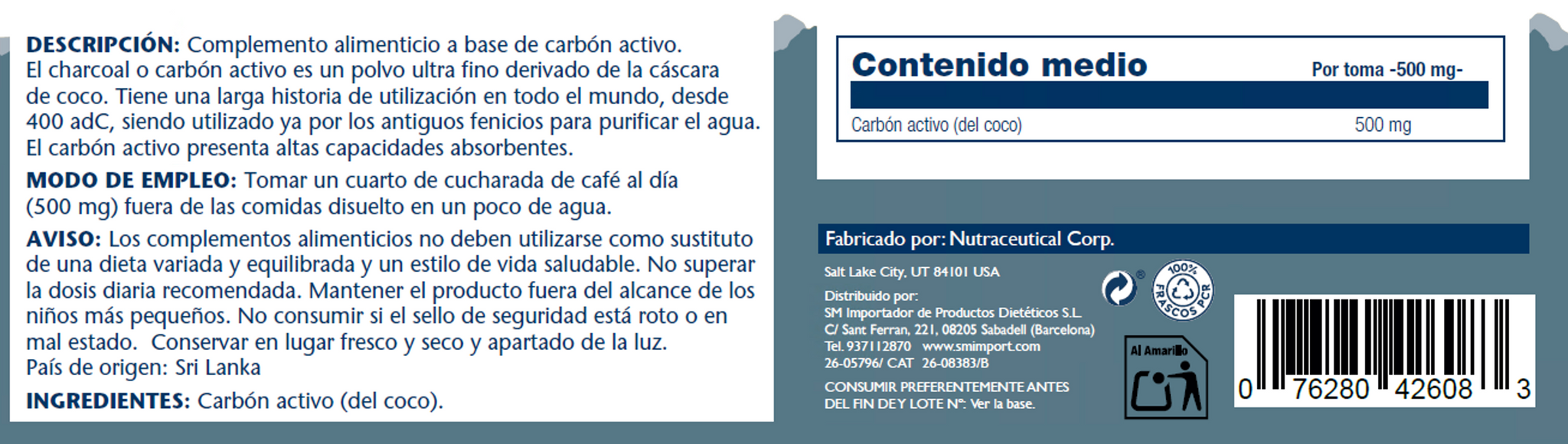Complemento alimenticio a base de carbón activo. El charcoal o carbón activo es un polvo ultra fino derivado de la cáscara de coco. Tiene una larga historia de utilización en todo el mundo, desde 400 adC, siendo utilizado ya por los antiguos fenicios para purificar el agua. El carbón activo presenta altas capacidades absorbentes.