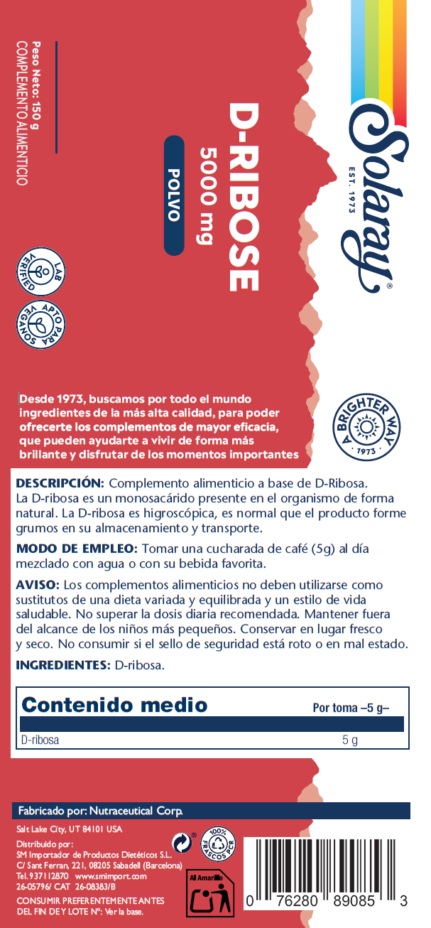 Complemento alimenticio a base de D-Ribosa. La D-ribosa es un monosacárido presente en el organismo de forma natural. La D-ribosa es higroscópica, es normal que el producto forme grumos en su almacenamiento y transporte.