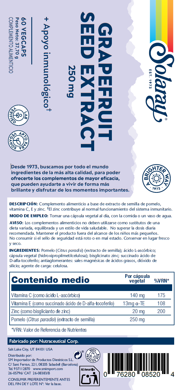 Complemento alimenticio a base de extracto de semilla de pomelo, vitamina C, E y zinc. ✝El zinc contribuye al normal funcionamiento del sistema inmunitario.
