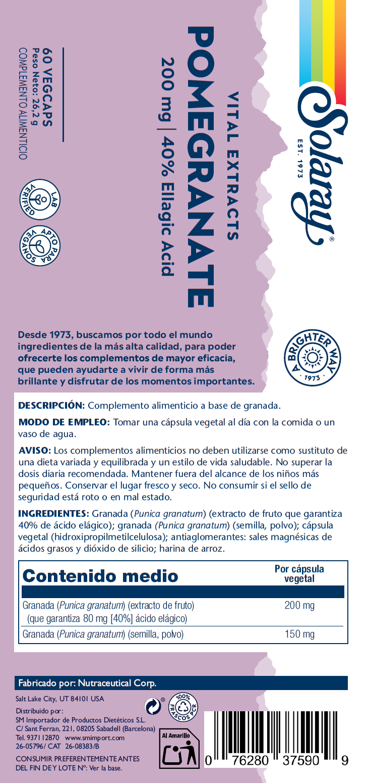Granada ( Punica granatum) (extracto de fruto que garantiza 80 mg [40%] de ácido elágico) 200 mg Granada ( Punica granatum ) (semilla) 150 mg