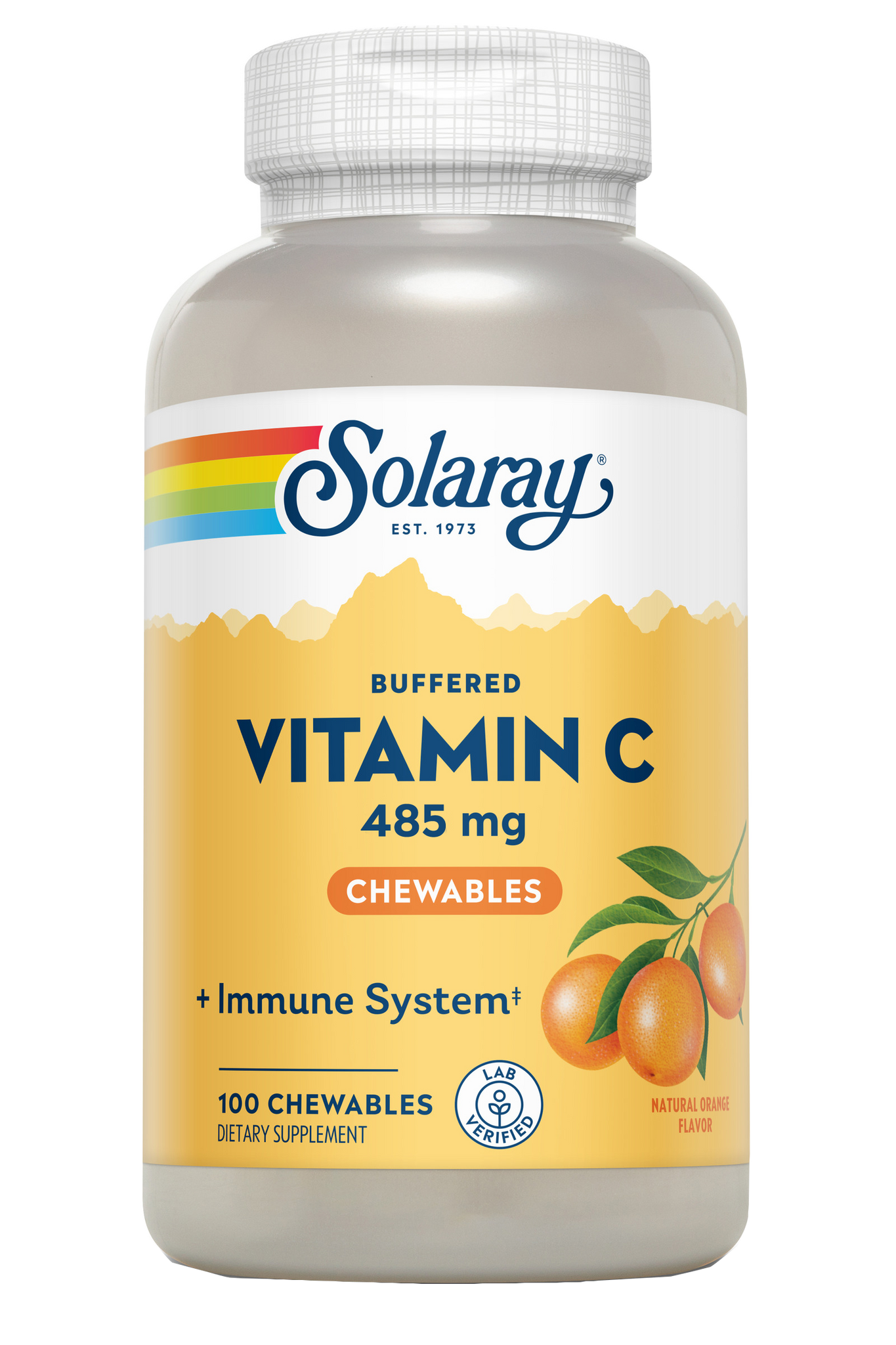 Vitamina C masticable con agradable sabor a naranja.